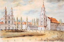 1776 (Anon.): "Mappa Kościoła Klasztoru folwarku y Placow do niego należących Xieży Bernardynów Kowieńskich nazwa współczesna" (Map of the Church of St. Georege and of the Bernardine Monastery, Kaunas). From Jagiellonian Digital Library via www.mapywig.org